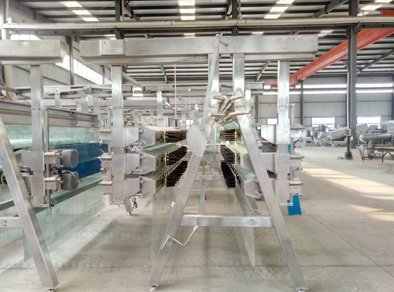 结构特征:采用机械传动方式,依靠禽类肢体与橡胶棒之间的相对摩擦运动,脱去禽类羽毛,采用A字型支架,脱毛箱可开闭,维修方便,箱体调节机构主要有高度调节机构,宽度调节机构和角度调节机构三部分组成,将箱体调节到最适宜的脱毛状态。