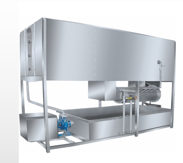 产品概述:该机适用于肉鸡宰杀后、浸烫前的松毛、预烫工作。通过高压水嘴喷射温水,使肉鸡羽毛蓬松,增强后序的浸烫效果。同时冲洗掉附着在肉鸡禽体上的脏物、有效避免污物在后序浸烫机里面堆积沉淀。该机设有过滤装置,将鸡毛等杂物过滤出来,从而实现水的循环利用。该机采用蒸汽热交换方式加热。该机有单线直通式、双线直通式和单线回转式三种型式可供客户选配。主要参数:1、外形尺寸:4000*1000*2200(单线直通式)4000*1250*2320(单线回转式、双线直通式)设备功率:15KW+0.75KW(单线直通式)18.5KW+0.75KW(单线回转、双线直通式)3、生产能力:跟随流水线节拍。水温:30~45摄氏度
